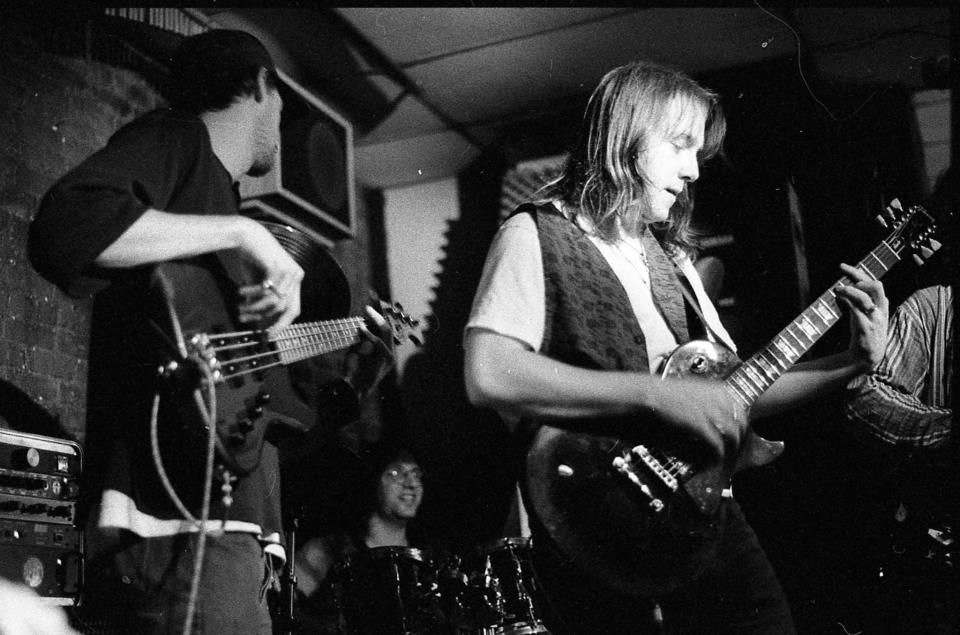 The tape didn’t start rolling until about thirty seconds after we’d begun playing. I, Dave Thomas, the drummer, took it upon myself to blend in bits of a recording made two months earlier at the same venue. Many of the songs from that night matched up with the night we are presenting, with one major difference. I, Dave Thomas, the drummer, was in California. Which means that the drum chair was helmed that night by the incredible Roy Mayorga.